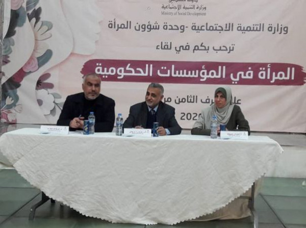 نظمت وزارة التنمية الاجتماعية بغزة صباح اليوم الخميس الموافق 5_3_2020 ممثلة في وحدة شؤون المرأة احتفالاً رسمياً بمناسبة يوم المرأة العالمي والذي يصاف الثامن من آذار تحت عنوان المرأة في المؤسسات الحكومية في قاعة قصر الريان غرب مدينة غزة.