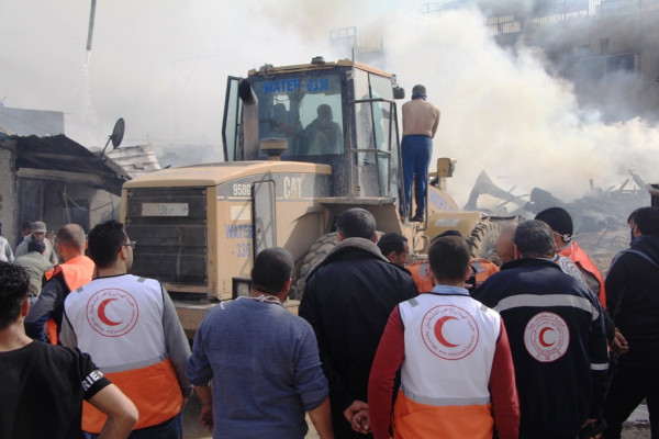 توجه الدكتور يونس الخطيب رئيس جمعية الهلال الأحمر الفلسطيني، إلى مخيم النصيرات، وسط قطاع غزة، بعد اندلاع حريق كبير فيه، أدى إلى وفاة 9 أشخاص على الأقل حسب مصادر وزارة الصحة، وألحق 51 إصابة في صفوف المواطنين، 14 منهم في حالة الخطر، بالإضافة إلى أضرار واسعة في الممتلكات، والمحال التجارية.