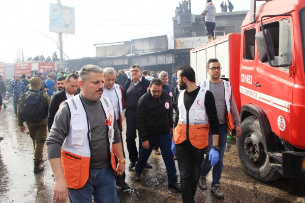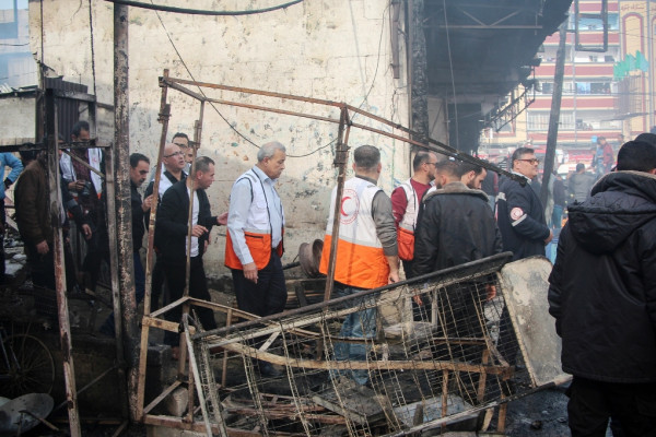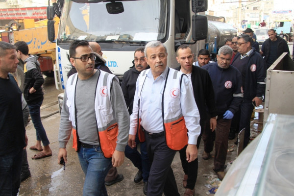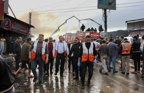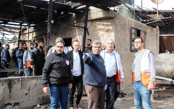 رئيس جمعية الهلال الأحمر يتفقد مخيم النصيرات بعد اندلاع حريق كبير فيه
