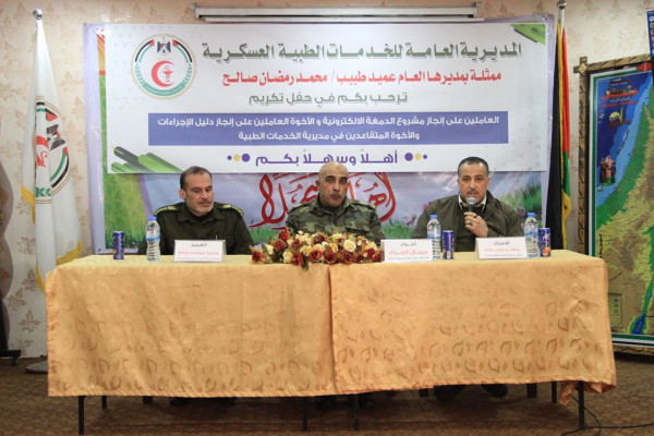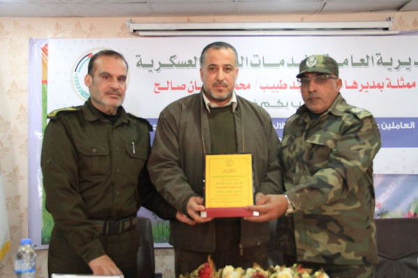 كرمت المديرية العامة للخدمات الطبية العسكرية التابعة لوزارة الداخلية والامن الوطني، مساء الخميس، الكوادر المشاركة في إنجاز مشروع الدمغة الإلكترونية والعالمين على إنجاز دليل الإجراءات والمتقاعدين في المديرية وذلك في قاعة معهد ضباط الاسعاف وتأهيل السائقين في مقر أنصار غرب مدينة غزة.