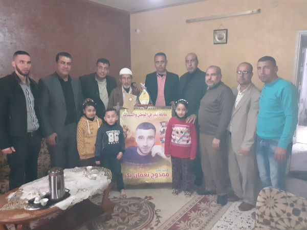 وكرم وفد الهيئة الأسير المحرر المريض مصطفى عاشور أبو نحل ، وقام بزيارة أهالى أسرى آل بكر وهم: (عائلة الأسير محمد جابر بكر والأسير محمد داوود بكر والأسير حسن فضل بكر والأسير ممدوح نعمان بكر)، واستمع الوفد لمعاناة