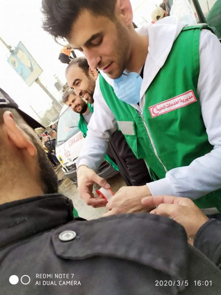 وخلال تفقد مدير عام المديرية العامة للخدمات الطبية العسكرية عميد طبيب محمد رمضان صالح لطواقم الإسعاف والطوارئ العاملة في الميدان.