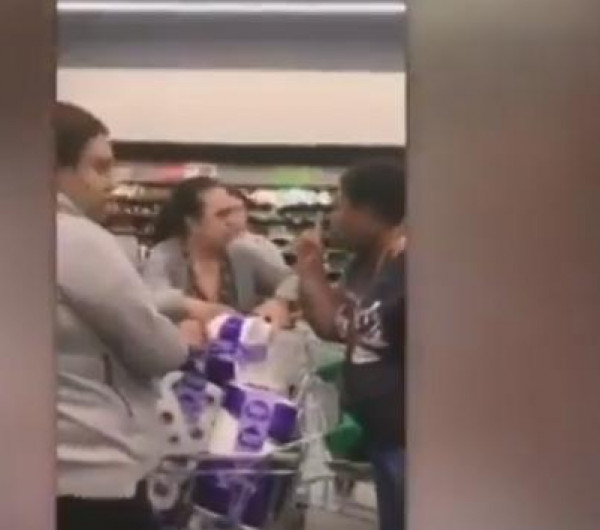 وأظهر مقطع فيديو نقلته "نورت" ثلاث نساء يمسكن بشعر بعضهن البعض ويصرخن أثناء شجارهن على حزمة من ورق المرحاض.