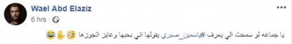أعلن قبل فترة عن إعجابه بالفنانة ياسمين صبري ورغبته في الزواج منها ونشر طلبه عبر حسابه على Facebook.