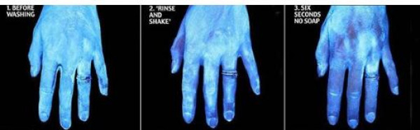 انتشرت على مواقع التواصل الاجتماعي مجموعة من الصور التي التُقطت باستخدام الأشعة فوق البنفسجية. وكشفت هذه الصور كيف تبدو حالة اليدين قبل عملية الغسل وبعدها، وذلك في إطار التوعية والوقاية من فيروس كورونا المستجد.