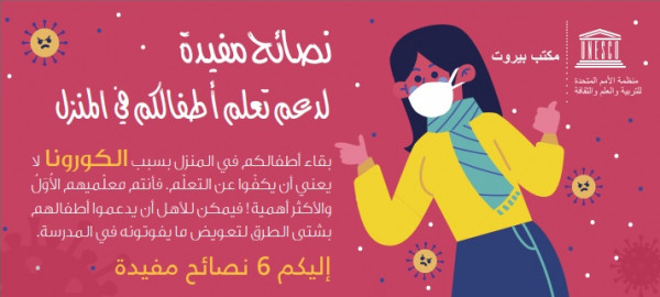 وأعتبرت اليونسكو أن بقاء الأطفال في المنازل بسبب تفشي فايروس "الكورونا" لا يعني أن يكفوا عن التعلم، وأن الأهل هم بمثابة معلمهم الأول والأكثر أهمية، وأن بإمكان الأهل دعم أطفالهم بشتى الطرق لتعويض ما يفوتونه في المدرسة.