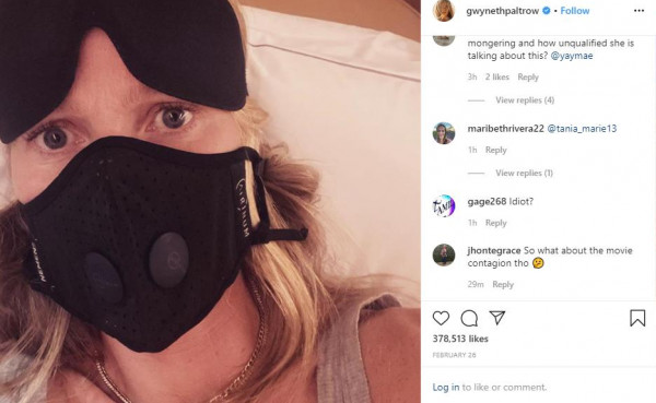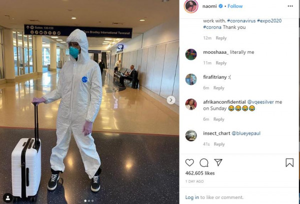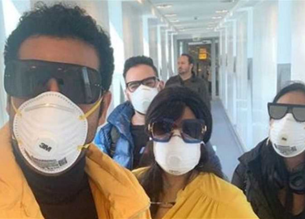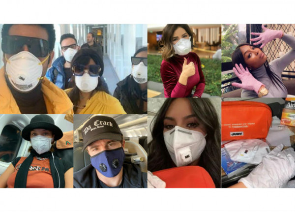 وشاركت الممثلة الأمريكية جوينيث بالترو بصورتها وتضع الكمامة، عبر (انستجرام)، وتستقل الطائرة متجهة إلى باريس، كذلك الشخصية التلفزيونية الأمريكية برودي جينر، ويستقل طائرة متجهة إلى بالي في إندونيسيا لحضور حفل زفاف أحد الأصدقاء، كذلك عارضة الأزياء الأمريكية بيلا حديد، وضعت كمامتها وتسافر على متن طائرة إلى باريس.