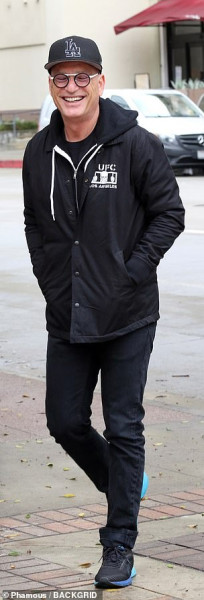 كما توجه ماندل، 64 سنة، إلى الاستوديو وهو يرتدي زيا أسود بالكامل وقبعة سوداء.