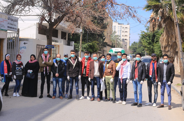 نظم اتحاد الشباب الديمقراطي الفلسطيني " اشد " وكتلة الوحدة الطلابية حملة توعية في مدينة غزة ، لطرق الوقاية من فيروس كوفيد 19 والمعروف بفيروس كورونا .