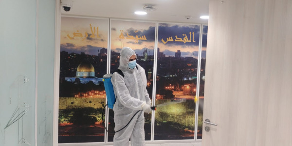 انسجاماً مع خطط الطوارئ لمنع انتشار فيروس "كورونا" أجرى فرع شركة كهرباء محافظة القدس اليوم الأربعاء، عمليات تعقيم شاملة لكافة أرجاء الفرع، وذلك ضمن إجراءات تطبيق معايير السلامة العامة والوقاية التي اتخذتها الشركة في جميع فروعها ومقراتها.