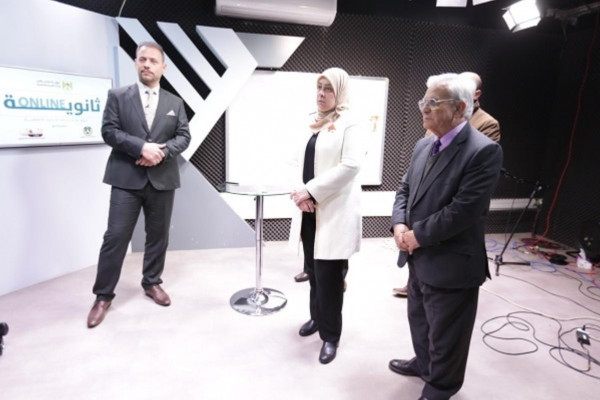 وتجولت د. غنام في استوديوهات فضائية القدس التعليمية، واستمعت إلى شرح من مدير الفضائية د. م. إسلام عمرو حول تفاصيل عمل المدرسين التابعين للتربية والتعليم في تسجيل المحاضرات وبثها على وسائل التواصل الخاصة بالفضائية والجامعة، والتسهيلات التكنولوجية التي قدمتها الفضائية للمدرسين لتسهيل تسجيل المحاضرات وبثها.