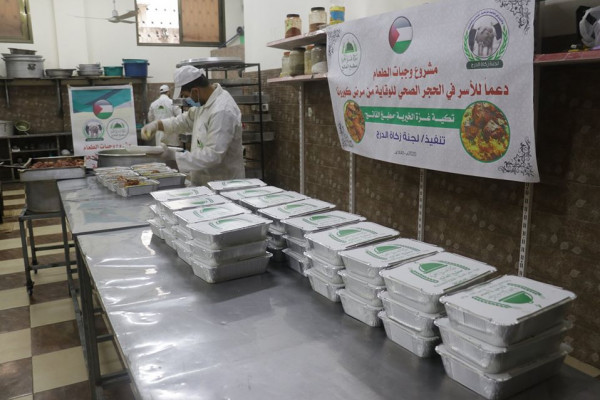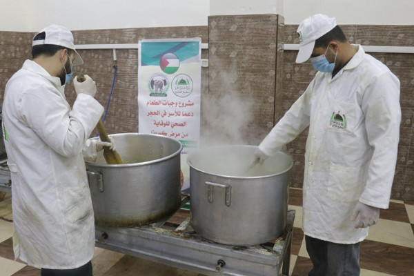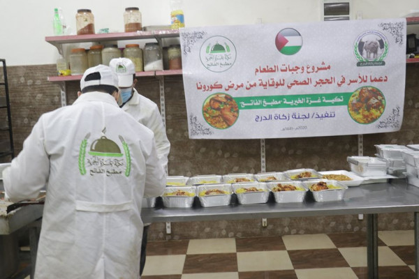 تكية غزة الخيرية تعد وجبات الطعام لمراكز الحجر الصحي بغزة