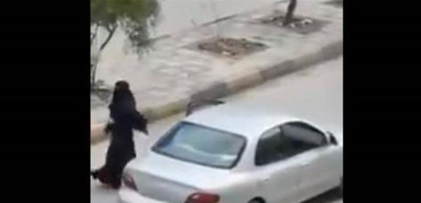 وتظهر بالفيديو فتاة ترتدي عباءة ونقاب، وقد ترجلت من سيارتها وسط الطريق وقامت بحركات راقصة بحسب (سكاي نيوز).