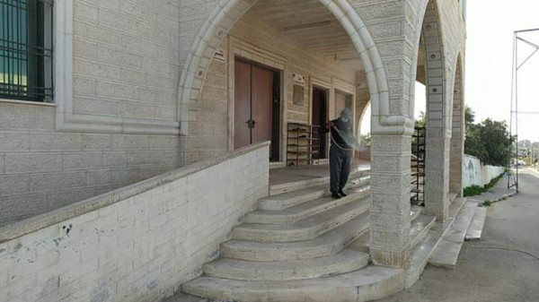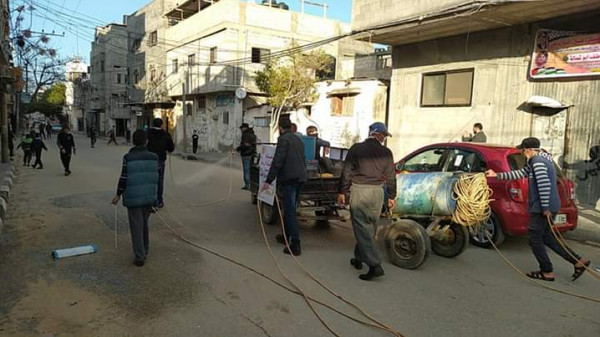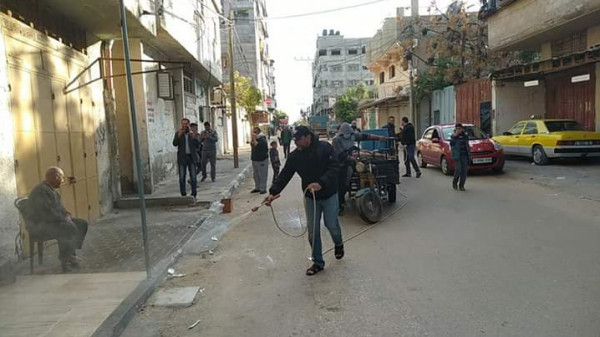 المرافق العامة والأماكن الحيوية في مناطق مختلفة من مخيم البريج ، كإجراء احترازي للوقاية من فيروس "كورونا" المستجد.