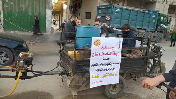 رابطة شباب "آل وشاح" تنظم مبادرة تعقيم لمخيم البريج