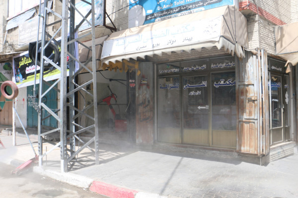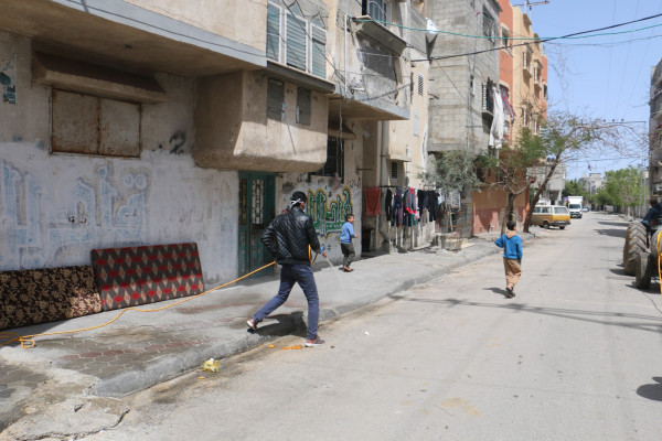 لجنة الطوارئ الصحية بمخيم البريج تواصل تعقيم الشوارع الرئيسية بالمخيم