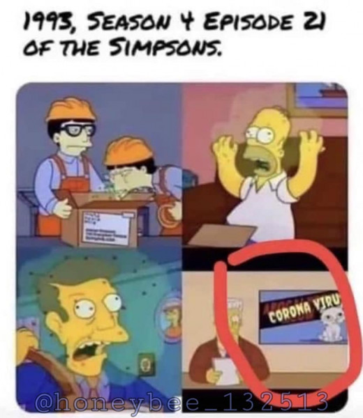 تداول نشطاء مواقع التواصل الاجتماعي لقطات من الحلقة ال21 من الموسم الرابع من سلسلة مسلسل "عائلة سمبسون"، والتي نُشرت عام 1993، وتُظهر أنها تنبأت بتفشي عالمي لفيروس "كورونا".