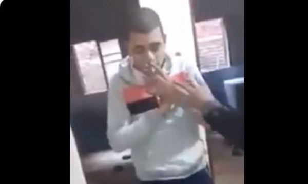 ويظهر بالفيديو الذي انتشر عبر "تويتر" ، أصوات ضحكات قبل أن يقول أحدهم: "الحشيش تمام؟".