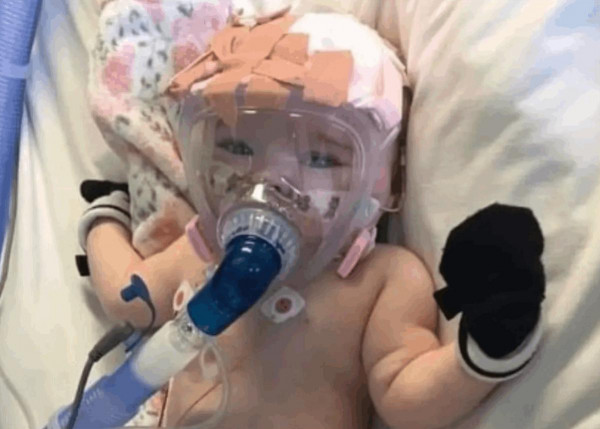 ونشر والدا الطفلة صورا موجعة لابنتهما الرضيعة وهي ترقد داخل أحد المستشفيات وتتلقى الأوكسجين على مدار الساعة لمساعدتها على التنفس بحسب (العربية).