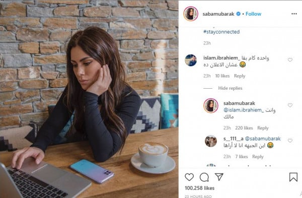 لكن صبا تفاجأت بتعليق أحد المتابعين والذي كتب: "واخده كام بقى عشان الإعلان ده"، لتُحرجه قائلة :" وأنت مالك".