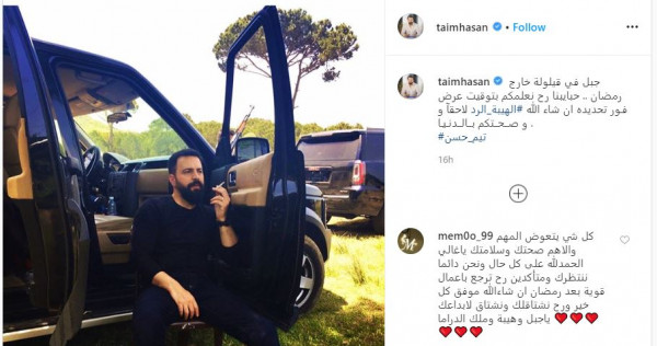 وكتب تيم على صفحته عبر "انستجرام":"جبل في قيلولة خارج رمضان.. حبايبنا نعلمكم بتوقيت عرض #الهيبة_الرد لاحق و فـور تحديده إن شاء الله و صــحــتكم بــالــدنـيـا".