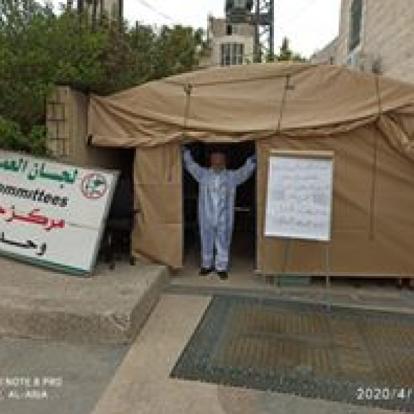 وعلى الصعيد الصحي قامت بنصب خيام أمام مراكزها وعياداتها المختلفة لفرز المراجعين والمراجعات للحد من إنتشار العدوى وذلك بالتنسيق مع دائره الطب الوقائي في وزاره الصحه في كل محافظه. وتمركزت الخيام أمام كل من مركز الشفاء في طوباس، ومركز حلحول الصحي، ومركز طوارئ الخليل في البلدة القديمة ومركز ومستشفى د. أحمد المسلماني في بيت ساحور وكذلك أمام مركز قلقيليه الصحي، ومركز المزرعه الشرقيه بمحافظة رام الله والبيرة بالتعاون مع لجنه طوارئ البلدة.