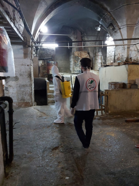 كما قامت المؤسسة بتجهيز الزي الواقي للطواقم العاملة لديها بجميع مستلزمات سبل الوقايه اللازمه للعمل في هذه الخيم وفق توجيهات منظمه الصحه العالميه وبروتوكولات وزاره الصحه الفلسطينيه.