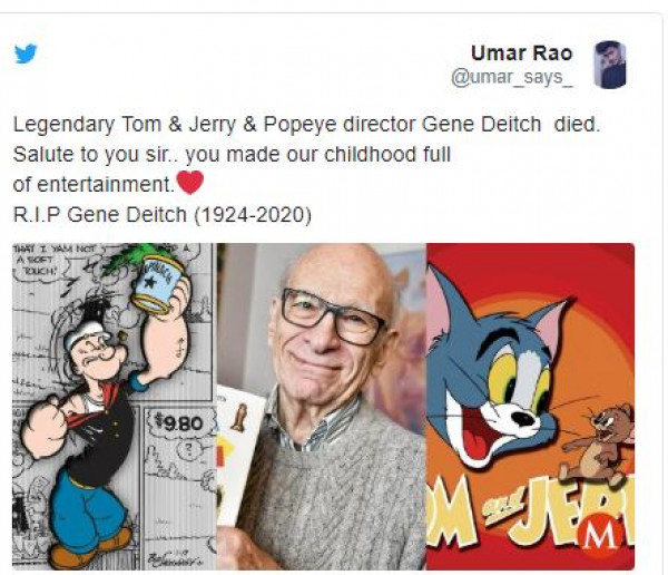 وتصدر خبر وفاة جين ديتش" وكالات الأنباء العالمية، كما تصدر مواقع التواصل الاجتماعي أيضا، حيث دوّن كثيرون عن ذكرياتهم مع "توم وجيري"، وكيف أثر هذا الرسام الكبير في طفولتهم.