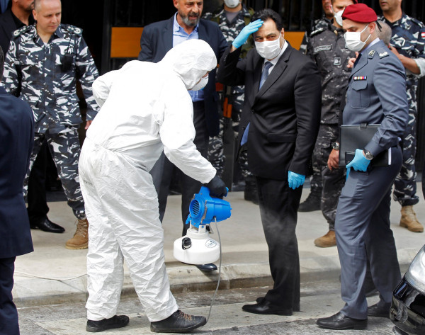 استُقبل أعضاء البرلمان اللبناني برش المطهرات لدى وصولهم لحضور جلسة برلمانية، اليوم الثلاثاء، تغير مكان إقامتها من مقر البرلمان إلى مسرح للسماح بمسافات التباعد الاجتماعي بين الحاضرين.