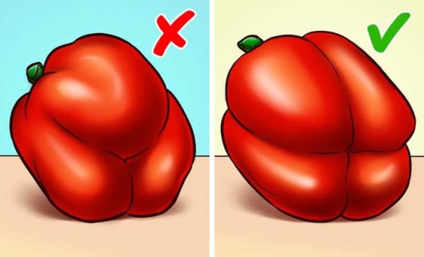 أول شيء يجب فحصه، هو ما إذا كان الفلفل ذو لون كثيف بدون بقع. عند اختياره، تحتاج إلى النظر أدناه. إذا كان بها 2 أو 3 نتوءات، فستكون أكثر مرارة مما لو كانت بها 4 نتوءات.