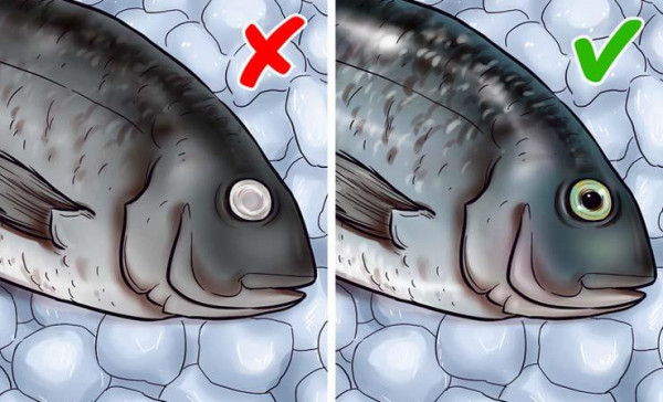 أولا، انظر إلى الأسماك في العين. تحقق لمعرفة ما إذا كانت العين بارزة وأن لونها أسود لامع.
