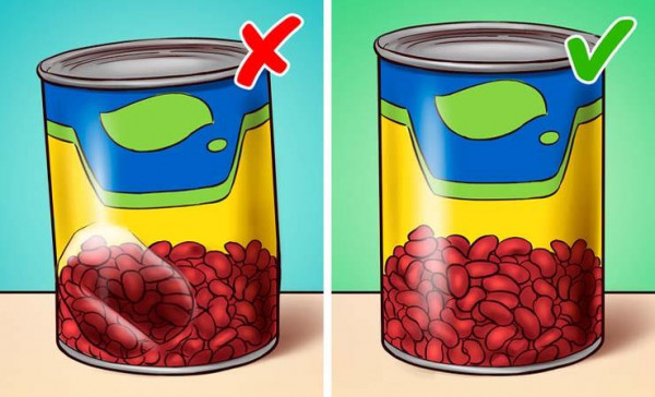 في حالة الطعام المعلبة، لا يمكننا التحقق من الخصائص المادية للمنتج بحواسنا، لذلك علينا التحقق من الملصق بعناية. تحقق من أن مستويات الملح والسكر ليست مرتفعة جدًا. يفضل شراء الطعام المعلب الذي تم حفظه في الماء أو في العصير الخاص به بأقل كمية من المواد الحافظة.