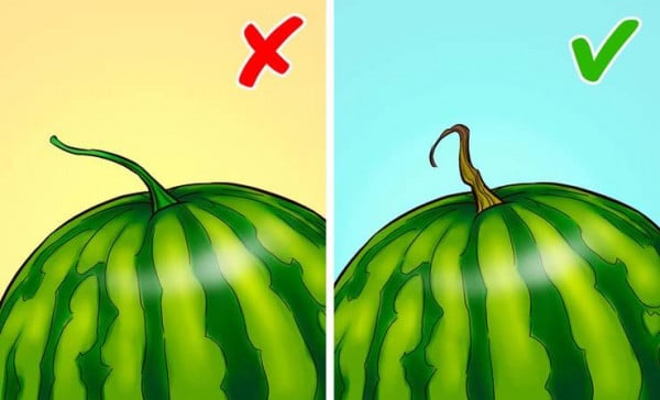 لا ينبغي أن تكون قشرة البطيخ شديدة الخضرة. إذا كان لونه أصفر، فهذا يشير إلى أن البطيخ قد قضى وقتًا كافيًا على الأرض في تلقي أشعة الشمس، وبالتالي سيكون أكثر حلاوة.