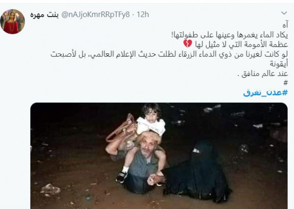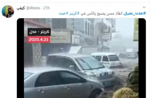 تداول نشطاء مواقع التواصل الاجتماعي مشاهد مُرعبة لما حدث للمواطنين اليمنيين في مدينة عدن جنوب اليمن جراء السيول الجارفة التي تسببت حتى الآن بوفاة 3 أشخاص بينهم أطفال.