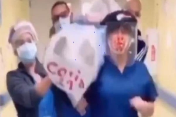 أثار فيديو متداول لممرضات يرقصن حاملات ما يبدو أنه كيس جثة عليه عبارة "كوفيد-19"، ضجة على مواقع التواصل الاجتماعي، وفق ما نقلت وكالة "الحرة" عن صحيفة "دايلي ميل" البريطانية.