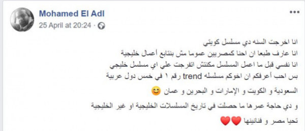 يأتي هذا الهجوم على خلفية حديث المُخرج المصري عن صعود المسلسل لقائمة "التريند" في 5 دول عربية ناسبًا الفضل إليه، وكتب في منشور له عبر حسابه الشخصي على موقع "فيسبوك": "أنا أخرجت السنة دي مسلسل كويتي أنا عارف طبعًا إن إحنا كمصريين عمومًا مش بنتابع أعمال خليجية أنا نفسي قبل ما أعمل المسلسل مكنتش اتفرجت علي أي مسلسل خليجي".