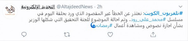 وذكرت صحيفة "الراي" المحلية أن تلفزيون الكويت اعتذر عن هذا الخطأ مؤكدين أنه خطأ غير مقصود، وأحالت وزارة الإعلام الموضوع إلى لجنة التحقيق.