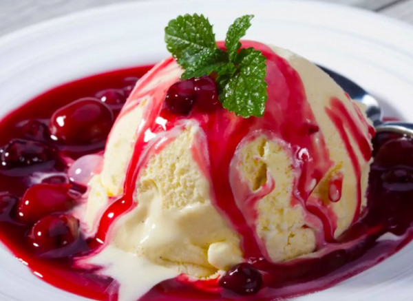 صلصة التوت والخوخ والآيس كريم