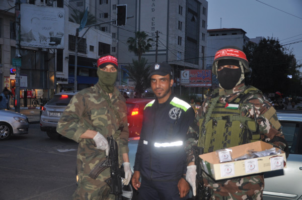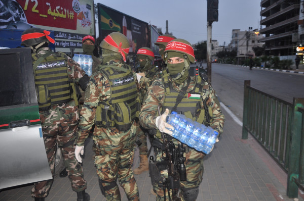 مقاتلو المقاومة الوطنية يوزعون الماء والتمور على المواطنين في غزة