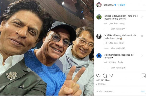 أعرب نجم WWE وممثل هوليوود جون سينا عن حبه للسينما الهندية، حيث نشر صورة قديمة تجمع جاكي تشان وجان كلود فان دام مع شاروخان.