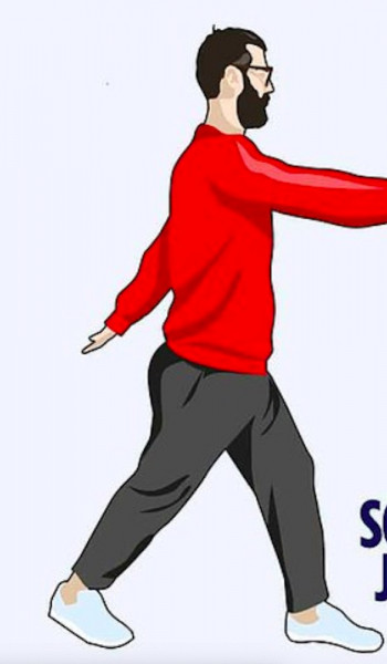 اتخذ وضعية الوقوف ثم ابدأ بالمشي بالمكان، وبعد كل 75 خطوة قم بقفزة المقص. لتنفيذ القفزة، قف وذراعك اليمنى وساقك اليسرى إلى الأمام، وذراعك اليسرى وساقك اليمنى إلى الخلف، ابدأ بالقفز وبدل وضعية الذراعين والساقين بالتناوب. يمكنك ممارسة التمرين لمدة 6 دقائق.