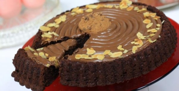 يخلط الكوكيز المطحون مع اللبن والبيكينج باودر