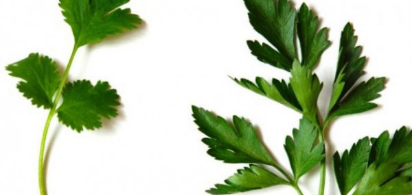 البقدونس: رائحة هادئة، ملمس ناعم وأوراق أقل شرشرة من الكزبرة.