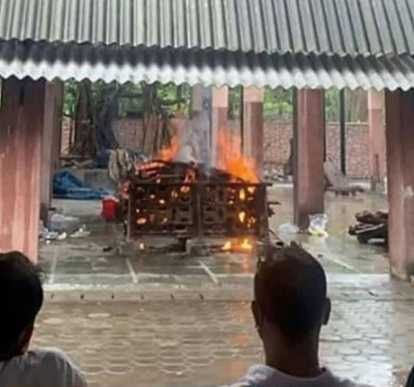 وأظهرت الصور المتداولة لحظة خروج الجثمان من المستشفى وسط دموع عائلته وأصدقائه في الفن، وفي صورة أخرى ظهرت لحظة حرق جثته.