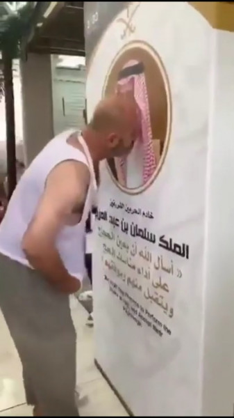 وكانت مواقع التواصل الاجتماعي قد تناقلت مقطع فيديو، له أثناء موسم الحج في العام الماضي وهو يمسح بملابسه صورة خادم الحرمين الشريفين الملك سلمان بن عبد العزيز، وولي العهد الأمير محمد بن سلمان، ثم يقبّل الصورتين، شاكرًا القيادة على نُبل الاستضافة وكرم الضيافة وتبني القضية الفلسطينية.