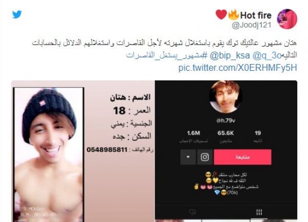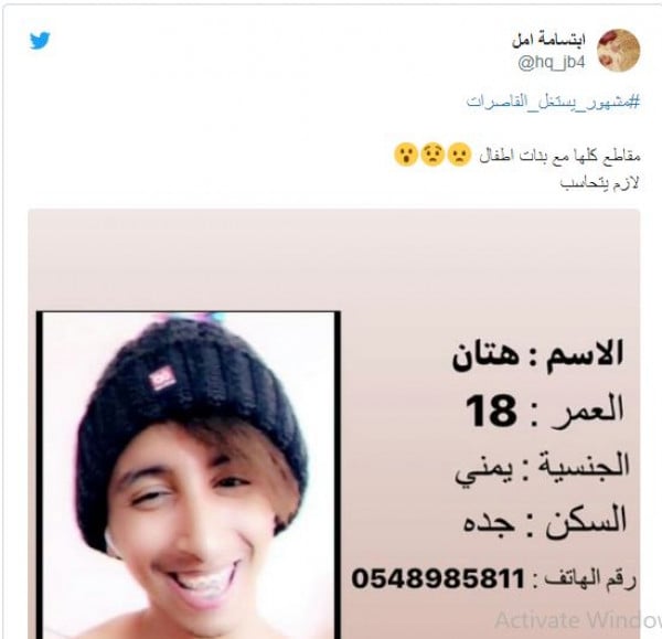 وأوضح مغردون أن هتان يمني، يسكن في مدينة جدة وعمره 18 عام فقط.