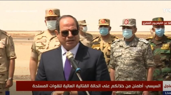 شدد الرئيس المصري عبد الفتاح السيسي، على أن الجيش المصري، قادر على الدفاع عن أمن البلاد القومي، داخل وخارج حدودها، وذلك أثناء تفقده عناصر المنطقة الغربية العسكرية قرب الحدود مع ليبيا.