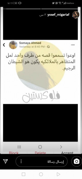 ونشر المقريف عبر خاصية الستوري على صفحته عبر "انستجرام" قائلاً: "اوعوا تسمعوا من طرف واحد لعل المتظاهر بالملائكية يكون هو الشيطان الرجيم".