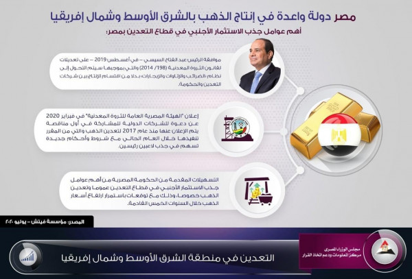 نشر مركز معلومات مجلس الوزراء المصري، اليوم الاثنين، رسماً، بيانياً، أوضح من خلاله أن مصر تحتل مكانة متميزة في إنتاج الذهب بمنطقة الشرق الأوسط وشمال إفريقيا.
