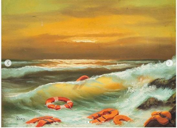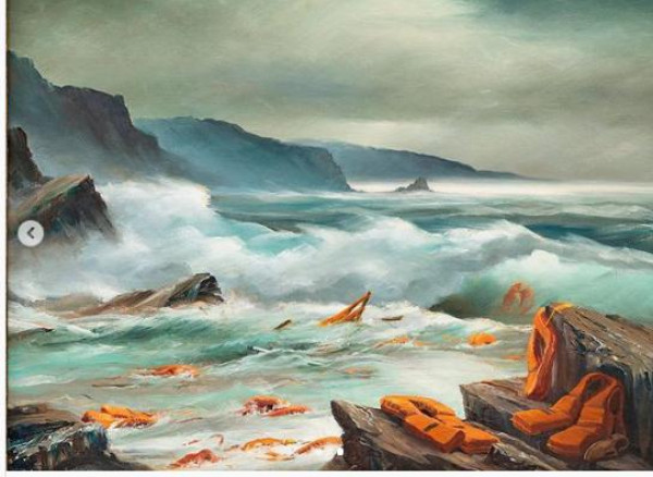 تتناثر المنحدرات العاصفة والبحار المنهارة مع سترات النجاة والعوامات البرتقالية الزاهية، ويتم غسلها على الشاطئ دون وجود ناجين في الأفق.